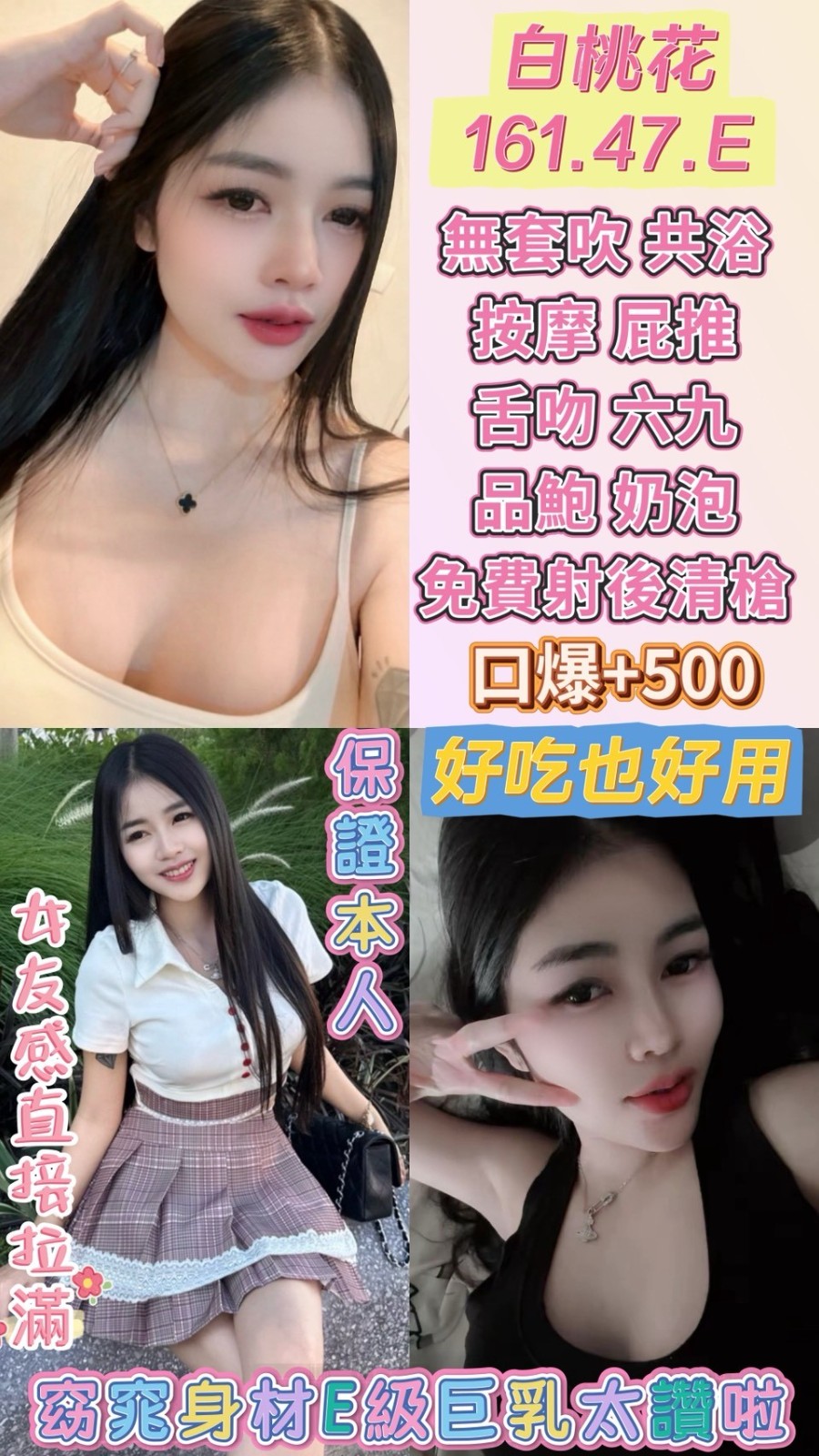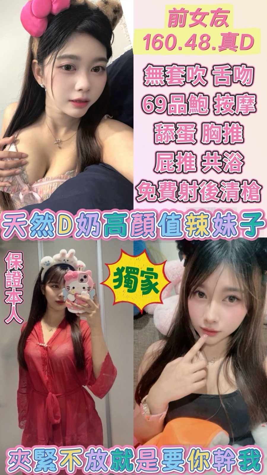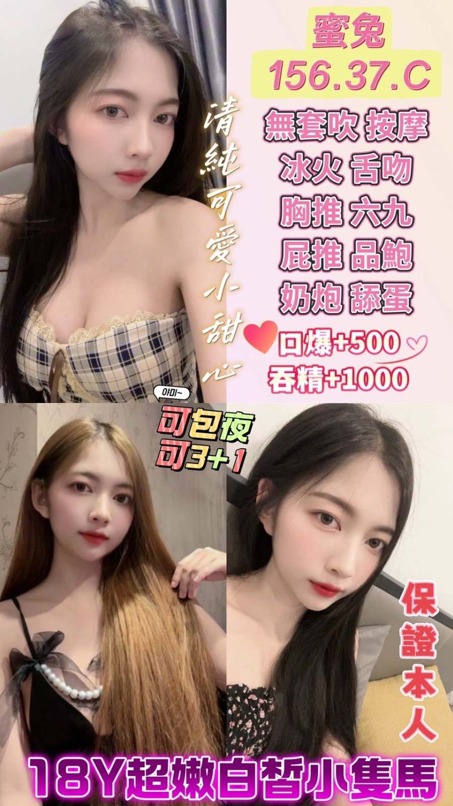 無套吹/共浴殘廢澡/親密KISS.舌吻(視個人衛生和妹妹現場感覺.自行開發)/六九/品鮑/舔蛋/按摩/奶泡/胸推/屁推/免費射後清槍